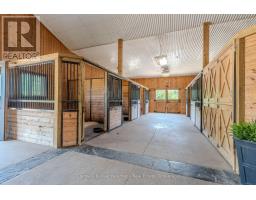 Have you been waiting for that truly special property? Attention horse loversthis spectacular 92 + acre estate just outside the village of Campbellville offers everything youve dreamed of and more. At its heart is a beautifully restored 1800s stone farmhouse that blends timeless charm with thoughtful modern updates. The home features a bright sunroom and a spacious main-floor primary bedroom wrapped in windows offering stunning views in every direction. The walk-out basement provides a fully self-contained living space with its own kitchen and bathroomperfect for in-laws, guests, or staff. The equestrian facilities are second to none, with two exceptional barns. The top barn includes 10 large box stalls, a grooming stall, wash stall, radiant floor heated tack room, feed room, viewing lounge and bathroom, on-site laundry, fly maintenance system, and heated main barn. The massive indoor arena (180 x 80) features high-quality, dust-free GGT footing ideal for year-round training. The bank barn offers an additional 10 large box stalls, a foaling stall, high ceilings, a wash stall, a radiant heated tack room, a feed room, a bathroom, laundry, and a spacious loft for hay storage. Outdoors, you'll find a large sand ring with excellent drainage, multiple paddocks with four-rail oak fencing, water and electricity to each paddock for trough, heater , and several individual or recovery paddocks. The property also includes an automatic front security gate, beautifully manicured grounds, extensive riding trails, and a crystal-clear artesian well supplying endless water. Natural gas services the property, and 20 acres are currently rented for crops at the rear of the lot. A large detached garage with three overhead doors includes one heated bay with a lift ideal for tractor or equipment storage and there's plenty of parking throughout. Located 30 min to Pearson Airport and 5 min to the 401, this location will be a steadfast investment for any purchaser. (id:51194)