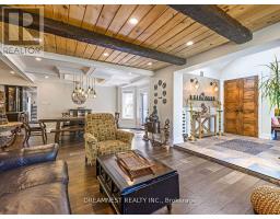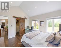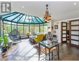 Nestled on a lush 1.67 acre lot in scenic Campbellville, this fully renovated 5 bedroom, 6.5 Bathroom bungalow perfectly blends contemporary farmhouse charm with luxurious resort-style living. Meticulously designed, this turnkey estate delivers an exceptional family estate and entertainer's paradise. Boasting over 6000 sq. ft. of finished living space, the gourmet chef's kitchen showcase top-of-the-line Thermador appliances, a Bosch built-in espresso machine, Miele double ovens, dual dishwashers, refined under-cabinet lighting - all seamlessly connected to a bright four-season sunroom, perfect for year-round enjoyment. The expansive primary suite provides a private sancturay featuring ensuite with dual rain shower heads with premium finishes. Main floor includes a dedicated spa wing with heated inground salt-water pool, hot-tub, sauna and fitness area with full bath, delivering an exclusive at-home wellness retreat. A private in-law suite offering a separate living room, bedroom with ensuite bath, and walk-in closet, perfect for multigenerational living or guest accommodation. The fully finished lower level includes a custom home theatre, bespoke live-edge bar, additional full bathroom, cedar-lined storage room, and secondary laundry - enhanced by designer millwork, barn doors, skylights, and upscale finishes throughout. Smart home technology is integrated via the Control4 system, offering complete automation and control of indoor and outdoor lighting as well as outdoor audio system, all accessible through a user-friendly app for seamless convenience. The professionally landscaped backyard is a true entertainer's dream, featuring a full outdoor kitchen, covered gazebo lounge, and cozy firepit area, surrounded by mature trees for ultimate privacy. Additional highlights include a detached barn, expansive manicured green spaces and a spacious three-car garage. (id:51194)