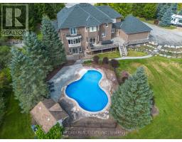 Welcome to this exquisite custom-built home, nestled in a private estate of Brookville on a stunning 5-acre property, offering over 6,000 square feet of luxurious living space. This exceptional Churchill Estates residence features 5 spacious bedrooms and 2 additional bedrooms in the fully finished walk-out basement ideal for in-law suite/nanny suite, along with 5 beautifully appointed bathrooms, and the property features a custom-built massive 3,000+ square foot custom hobby farm with mezzanine, perfect for a variety of uses, like an indoor basketball court, Private Gym Etc Step inside and be captivated by the gourmet kitchen, equipped with top-of-the-line upgraded appliances. The home is adorned with pot lights, hardwood, and crown moulding. Every bathroom in the home is either semi-ensuite or ensuite, ensuring optimal comfort and privacy for all.The primary bedroom is a true retreat, complete with a Juliet balcony that offers sweeping views of the surrounding property. An additional walk-out balcony is accessible from the den, providing the perfect relaxing space. Hardwood floors flow seamlessly throughout the home. Outdoor living is just as impressive, with a lush, well-maintained yard and a heated private swimming pool, offering a Muskoka-like experience right at your doorstep. The seller has spared no expense, investing thousands in upgrades to ensure the property is a true showcase of luxury living. This estate is the epitome of elegance and convenience, offering unparalleled amenities and an unbeatable location. It truly is the ultimate in sophisticated living and within commutable distance. (id:51194)
