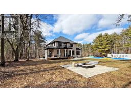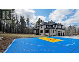 Stunning newly built custom estate on 4+ acres in Milton's rural corridor! 5,103 sq.ft. above grade, finished walk-out basement - over 7,600 sq.ft. of total luxury living. Grand double-height foyer with marble porcelain tile and curved staircase with wrought-iron spindles. Formal living with soaring open-to-above ceilings. Dining room with coffered ceiling, wainscoting and crystal chandelier. Great room with coffered ceilings, marble feature wall, gold sconces and stunning forest views. Chef's kitchen: full-height cabinetry, quartz waterfall island seating five, double wall ovens, built-in fridge and coffee maker. Full spice kitchen with cabinetry, quartz counters, double sink, fridge and range hood - ideal for entertaining! Main floor guest bed for in-laws. Primary suite with tray ceiling, French doors to a private balcony, custom walk-in closet and spa ensuite with dual vanities, soaker tub, heated towel bar and glass shower with gold marble surround. Three additional beds with tray ceilings, hardwood floors and private ensuites. Upper laundry with full cabinetry. Finished W/O basement: home theatre, gym, games area, rec room, guest bed, full marble bath, cold room and private walk-out entrance. Backyard paradise: covered rear deck, concrete fire pit patio with stone surround, full-size outdoor basketball and sports court with custom logo, children's treehouse and play structure in the forest, trampoline area and sprawling lawn - all surrounded by mature trees with complete privacy and no rear neighbors. Drone photos reveal the remarkable scale of this private compound, minutes from Milton amenities. 5+1 Bed, 6+ Bath, Triple Garage, 5,103 sq.ft. MPAC | Spice Kitchen, W/O Basement, 4.2-Acre Lot, Marble & Hardwood Floors, Designer Ensuites, Home Theatre, Gym, Basketball Court, Fire Pit, Existing Well, Future Elevator. Main and second floor laundry. Pot lights in side and out side the house. (id:51194)