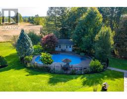The complete country package with room for the in-laws and potential to work from home! Breathtaking is the only way to describe this fabulous home and property! Situated on approx. 34 acres (16 workable) with attached 3-car garage, separate 3,840 sq. ft. workshop (1,920 sq. ft. shop, 1,920 sq. ft. loft), heated wood working area, separate driveway, large heated shed, heated in ground saltwater pool, cabana and all the privacy you could ever hope for. All this plus approx. 4500 sq. ft. of beautifully finished living space! A large, covered porch welcomes you into this immaculate custom-built home where you will find quality finishes, tasteful decor and attention to detail from top to bottom. The well-appointed main level offers a spacious living room with fireplace open to the dining room creating the perfect gathering space for family and friends. A gourmet kitchen with stylish shaker cabinetry, quartz counter, breakfast bar, SS appliances and incredible walk-in pantry will surely delight the cook in the home. The adjoining family room enjoys a toasty fireplace and walkout to the patio overlooking the beautiful grounds and separately fenced pool. An office, powder room, enviable laundry room and garage access complete the level. The upper level offers 4 spacious bedrooms, the primary with a walk-in closet and updated 3-pc ensuite. The 3 remaining bedrooms share a luxurious 4-pc bathroom. The finished lower level adds to the living space with an open concept layout offering a gorgeous kitchen with shaker style cabinetry, quartz counter, SS appliances and breakfast bar. The adjoining rec room enjoys another fireplace and walkout to a covered patio. A 5th bedroom, 3-pc bathroom, huge cold cellar and loads of storage space complete the package. And talk about location surrounded by the Bruce Trail for your hiking pleasure and just steps to Limehouse Conservation Area and the quaint Limehouse Public School with easy access to Acton and Georgetown for all your needs. (id:51194)