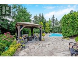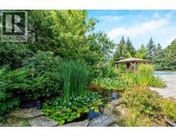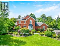 Welcome to this ULTRA-PRIVATE SECRET GARDEN - A Rare Executive Country Estate Property backing onto Blue Springs Golf Club (Home of PGA Canada) w/ the most stunning yard that will rival any luxury resort. This prestigious all-brick home features open concept living + fully finished basement. It is nestled on a stunning 1.38-ACRE LOT (including a beautiful side lot for added privacy) in a quiet enclave of distinguished executive homes. There is a sense of space as you enter the grand foyer w/ its 9' ceilings and curved staircase. The heart of this home is the gourmet EI kitchen which overlooks the WO to the stunning yard and living room w/ vaulted ceiling, fireplace and additional WO to the yard. There is a main level office located off the front entrance and convenient main level laundry w/ tub. The upper floor has 3 generous bedrooms (there were 4 - can easily convert back), one being the primary bedroom with his/her closets and 5-pc ensuite. The basement features an over-sized 4th bedroom, RI for bathroom, a 2nd office, gym, family room and workshop. The dream yard will take your breath away and includes a pavilion for dining al fresco, heated pool, koi pond w/ waterfall, golf-themed bar, screened-in pergola, extensive hardscaping (2000+ SF of flagstone installed on 3 of concrete for stability) and professional low-maintenance landscaping - the ultimate space for entertaining. Additional features: 3-car garage, parking for 10+ in the driveway, garage entry to home, replaced exterior doors, no rentals, energy efficient gas pool heater (2018), pool liner and cover (2025), furnace (2017), well pump (2024); water softener, UV system, HWT all owned; all windows replaced and home re-insulated, extensive UG sprinklers (including side lot), 12 x 16 double-sided pine Mennonite-built shed. Peaceful location close to golf, trails, lake, 15 minutes to 401. This is your opportunity to finally make a luxury move to the country ... let's get you in there for summer! (id:51194)