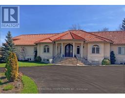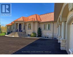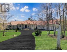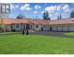 Discover your personal paradise nestled in the enchanting beauty of Terra Cotta-a remarkable 11-acre estate featuring a nearly 2-acre spring-fed private lake brimming with wildlife. This Spanish-style raised-ranch is perfectly complemented by a striking terra cotta tile roof. Step inside to an expansive open-concept foyer with a 14-foot ceiling, leading into a family room highlighted by a floor-to-ceiling stone fireplace. The home boasts 18 rooms on the main level, showcasing vaulted and recessed ceilings. The layout includes 4+1 bedrooms, with 4 of them having en-suite bathrooms, totaling 5 bathrooms. The main level features elegant travertine tile flooring, while the living room, dining room, bedrooms, and office are adorned with walnut hardwood. Multiple walkouts lead to a large deck overlooking the vast lawn that gently slopes to the private lake. The bright +1 bedroom with an en-suite and private walkout offers a tranquil retreat for guests, family, or as a nanny suite. Enjoy the comfort of a high-end, dual-redundant in-floor radiant heating system that warms the entire home and the 4-car garage, providing consistent warmth even on the coldest days while promoting an eco-friendly lifestyle. Relax with family and friends by the freshwater pool, which is fully equipped for conversion to saltwater. Welcome to your dream home, where luxury meets tranquility, all just 10 minutes from downtown Georgetown, 8 minutes from Northwest Brampton and 30 minutes from Pearson Airport. (id:51194)
