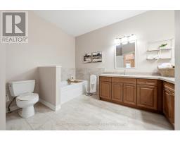 $155 MonthlyBeautiful 2-bedroom, 2-bathroom bungalow with low-maintenance living with parking for 2 cars (1 garage & 1 on upgraded rubber driveway). The home features gleaming hardwood flooring throughout, tile in the eat-in kitchen, & impressive 9-foot ceilings that enhance the bright, open feel. The front entrance with closet leads into the formal living & dining room at the front of the home, highlighted by hardwood flooring and a large feature window allowing natural light to pour in. The eat-in kitchen offers excellent flow with a centre sit-up island overlooking the breakfast area and family room. Features include quartz countertops, stainless steel appliances, double sink, and ample cabinetry including pantry. The family room is warm and inviting with a cathedral ceiling, gas fireplace, and four windows that brighten the space. A walk-out from the kitchen leads to the backyard. Off the kitchen is the mudroom & laundry space that provides tile flooring, access to the garage, large double closet & an additional walk-out to the backyard. The spacious primary suite features a tray ceiling, walk-in closet, large window, & 5pc ensuite with deep soaker tub including a handheld shower head, 2 sinks, and separate glassed shower. The second bedroom is generously sized with two arched windows & closet space. Hardwood stairs lead to the unfinished basement, offering great potential to create additional living space with the high ceiling height, open space and rough-in for an additional bathroom. Enjoy easy maintenance with turf in both the front & backyard, plus a private deck space to relax outdoors. Some notable features include; Shingles (2020), Furnace (2021), AC (2021), Rubber Driveway, Turf Landscaping, Hardwood Flooring, and Whirlpool stainless steel appliances. Conveniently located within walking distance to grocery stores, restaurants, shopping, church, parks & more. Common Elements fee of $155/Mth For Snow Removal, Garbage Pickup, Common Elements Maintenance. (id:51194)