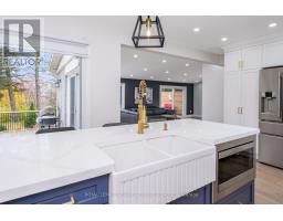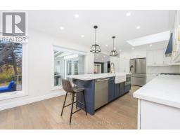 Tucked away in the center of mature Georgetown is the stunning Chipper Court. This quiet, private cul-de-sac combines the walkable convenience of restaurants, shopping & schools but the utmost privacy of large lots, mature tree cover and stunning ravine views. When you enter the foyer, you'll be immediately stunned by this extensively renovated bungalow - smooth ceilings, pot lights and engineered hardwood run throughout the main floor as you flow through the family friendly layout. The dining room and kitchen have breathtaking ravine views through the oversized picture windows flooding the space with natural night. The brand-new kitchen showcases new cabinetry, an oversized island, stainless steel appliances quartz countertops & a skylight above the stove. Bonus space continues in the family room addition with electric fireplace surrounded in stone and two separate walk-outs to the huge deck that spans the entire back of the home. The main floor is completed by a separate wing of the home featuring 3 great sized bedrooms, all with oversized windows. The primary holds a sunken walk-in closet and an elegant 3-piece ensuite with standing glass shower, storage pantry and floating vanity. This wing is completed by an equally stunning 4-piece bathroom with oversized tiles, pantry storage and floating vanity. Downstairs in the finished basement you'll find bonus living space with the rec room, 4th bedroom featuring pot lights and luxury vinyl flooring. The basement has been thoughtfully designed with multiple, extensive storage areas, a rough-in for a wet bar and the potential to add a third bathroom next to the 4th bedroom. Outside offers a rare, flat lot with something for the entire family. Enough space for the kids to play and enjoy the outdoors, beautiful outdoor eating areas and lounge space will offer breathtaking sunset views over the ravine - everyone will love the outdoor living features of this property just as much as the indoor highlights. New furnace (2026) (id:51194)