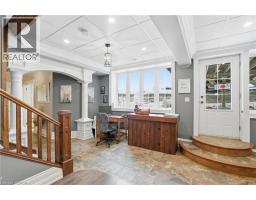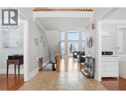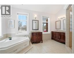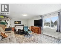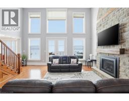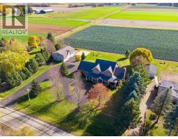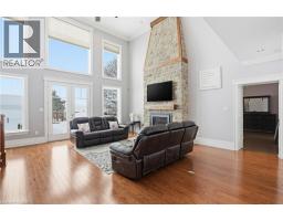 Nearly 5,000 sq ft of custom finished living space across three levels, offering 6 bedrooms and 5 bathrooms, set on a pristine 1-acre lot in Carlisle, plus a separate heated 50’ x 30’ garage/workshop with a winterized loft bedroom. This exceptional multi-generational custom home features a main-floor primary suite with vaulted ceilings and a spa-like 6-piece ensuite, soaring ceilings, floor-to-ceiling windows, and a custom stone gas fireplace anchoring the bright open family room. Designed for everyday living and entertaining, the home offers separate living and dining rooms, an eat-in kitchen with ample storage and stainless steel appliances, and a walkout to the rear deck with long-range country views. Main-floor laundry provides convenient access to both the garage and basement. The fully finished lower level includes above-grade windows, 9-foot ceilings, additional baseboard heating, an upgraded kitchen, two bedrooms, and a bathroom, along with a separate entrance, making it ideal for guests or an in-law suite, plus a walkout to the patio and backyard. Exceptional curb appeal features landscaped grounds, circular drive, and a classic full-width front porch. Additional highlights include roof (2023), owned hot water tank, water softener, reverse osmosis and water treatment system, Generac generator, dual 200-amp electrical panels, and security system with cameras—offering the perfect blend of peaceful country living and everyday convenience, minutes to parks, schools, highways, and major amenities. (id:51194)