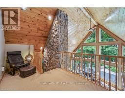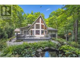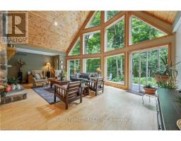 A Private Country Retreat ~ Welcome to your own piece of paradise-a stunning country estate set on nearly 1.4 acres of pristine land, where nature, luxury, and comfort converge. This exquisite home boasts a soaring 24-foot cathedral ceiling in the great room, framed by floor-to-ceiling windows that offer breathtaking views of the surrounding forest, manicured gardens, and a tranquil ornamental pond. Step outside to explore your private trails or relax in the peaceful sitting area - a nature lover's dream, right in your own backyard. Inside, timeless craftsmanship is on full display. Solid maple hardwood flooring, a dramatic floor-to-ceiling stone fireplace, and rich pine doors and trim create a warm and welcoming atmosphere throughout. The spacious kitchen is a chef's delight, featuring custom maple cabinetry, quartz countertops that seem to stretch endlessly, stainless steel appliances, and a propane stove. The open-concept layout flows beautifully from the kitchen into a formal dining room, which overlooks the great room and leads to a screened in California room with skylights - the perfect spot to enjoy morning coffee, meals or evening conversation, bug-free. Upstairs, the primary suite is a serene retreat with a generous walk-in closet, a four-piece ensuite, and a cozy loft with a sitting area and workspace. The main level includes two additional bedrooms and a full bathroom, plus a convenient laundry room and mudroom with access to an oversized two-car garage. A separate staircase leads to the fully finished walkout basement, featuring a massive recreation room with a wood-burning stove, a fourth bedroom, utility space, and a hobby room. Just a short drive to Guelph and with easy access to the 401 for commuters, this exceptional home offers the best of country living with the convenience of the city nearby. Experience the tranquility and fall in love with the lifestyle. (id:51194)