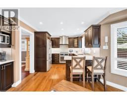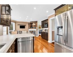 Welcome to a truly exceptional residence where refined elegance meets modern sophistication. Impeccably maintained and masterfully upgraded, this home is set on a quiet, family-friendly crescent in Georgetown. Step into the front foyer that exudes understated luxury with crisp wainscotting and refined finishes that seamlessly flow into the home's principal rooms. Formal living room is beautifully designed for both entertaining and everyday comfort with rich hardwood flooring. Dining room is both gracious and inviting and features a coffered ceiling and crown moulding. Designer-inspired kitchen showcases rich espresso cabinetry and is beautifully appointed with a $15K Jenn-Air appliance package, perfectly suited for everyday living and elevated entertaining. Inviting breakfast area features walk-out access to the outdoor living space and a striking double-sided gas fireplace that serves as a stunning focal point. Anchored by rich hardwood flooring, the spacious family room offers the perfect blend of warmth, comfort and everyday living. A custom audio system fills the home with rich sound, seamlessly integrated throughout the kitchen, living and family rooms, garage and backyard. Upper level presents 4 beautifully appointed bedrooms. Primary suite is a private sanctuary with his/her closets and a charming sitting area-perfect for quiet reading. The exquisite ensuite bath offers a freestanding soaker tub, sleek double vanity and oversized glass-enclosed walk-in shower. The fully finished lower level is a beautiful extension of the home. Featuring a stylish bar, fireplace, three-piece bath, fitness studio and a sophisticated lounge, this exceptional area is perfectly suited for entertaining guests or unwinding in comfort. A serene backyard oasis awaits, featuring a grand pergola, mature landscaping and a fully fenced yard offering exceptional privacy and tranquility. Heated two-car garage with epoxy-finished floors and Wi-Fi-enabled openers! (id:51194)