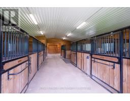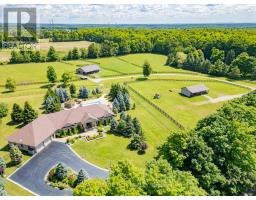 Welcome to this stunning multi-generational country property situated on 44 acres near Acton. Enter the main house through automated electronic front entry gates. Features of the main house include nearly 5000 sq. ft. of luxury living. Maple kitchen w/ granite countertop and backsplash overlooking a large eat-in area with walk-out to large deck overlooking the pool and backyard. Thermador and Miele s/s appliances. Separate and formal open-concept dining room. Open-concept living room with cathedral ceiling and wood burning fireplace. Main floor office. Primary bedroom with walk-in closet 4 pc ensuite and walk-out to deck overlooking the 18 x 36 heated salt water pool with electric pool cover. Main floor laundry and a second laundry in the basement. Huge 9 car attached garage with access to the house and backyard. Fully finished walk-out basement set up as an in-law suite with full kitchen with granite countertop and centre island, large and bright bedroom with 3 pc semi-ensuite bath, , living , dining and games room and tons of storage. Gorgeous backyard with extensive wrought iron fencing. Multiple dining areas. 10 x 10 pool cabana. Approximate 4000 sq. ft. of stone decking with extensive landscaping and stunning gardens. 12 zone, 60 head sprinkler system for front and rear gardens. 30 x 60 Gara Farm Structures barn with 6 System Fencing stalls, separate tack room and large hay storage area. 5 large oak-board paddocks with room for more and a separate driveway to the barn. Lots of room to add an indoor arena if desired. Updates include new geo-thermal furnace in 2022, new pool pump 2024, new pool heater and chimney 2023, Miele dishwasher 2024, Miele induction stove-top and wine fridge 2023. Generator for the full main house. The secondary dwelling features 3 +2 bedrooms. 2.5 baths, partially finished basement. Main floor laundry. Large eat-in kitchen. Separate septic system and drilled well. Propane furnace & central air conditioning. Built in 2018. (id:51194)
