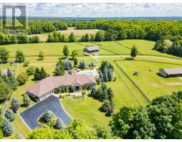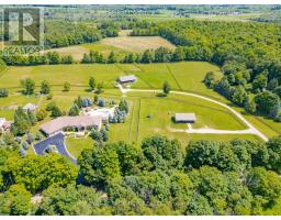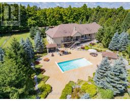 Welcome to this stunning multi-generational country property situated on 44 acres near Acton. Enter the main house through automated electronic front entry gates. Features of the main house include nearly 5000 sq. ft. of luxury living. Maple kitchen w/ granite countertop and backsplash overlooking a large eat-in area with walk-out to large deck overlooking the pool and backyard. Thermador and Miele s/s appliances. Separate and formal open-concept dining room. Open-concept living room w/ cathedral ceiling and wood burning fireplace. Main floor office. Primary bedroom w/ walk-in closet 4 pc ensuite and walk-out to deck overlooking the 18 x 36 heated salt water pool w/ electric pool cover. Main floor laundry and a second laundry in the basement. Huge 9 car attached garage with access to the house and backyard. Fully finished walk-out basement set up as an in-law suite with full kitchen with granite countertop and centre island, large and bright bedroom with 3 pc semi-ensuite bath, , living , dining and games room and tons of storage. Gorgeous backyard with extensive wrought iron fencing. Multiple dining areas. 10 x 10 pool cabana. Approximate 4000 sq. ft. of stone decking with extensive landscaping and stunning gardens. 12 zone, 60 head sprinkler system for front and rear gardens. New roof 2025. 30 x 60 Gara Farm Structures barn with 6 System Fencing stalls, separate tack room and large hay storage area. 5 large oak-board paddocks with room for more and a separate driveway to the barn. Lots of room to add an indoor arena if desired. Updates include new geo-thermal furnace in 2022, new pool pump 2024, new pool heater and chimney 2023, Miele dishwasher 2024, Miele induction stove-top and wine fridge 2023. Generator for the full main house. The secondary dwelling features 3 +2 bedrooms. 2.5 baths, partially finished basement. Main floor laundry. Large eat-in kitchen. Separate septic system and drilled well. Propane furnace & central air conditioning. Built in 2018. (id:51194)