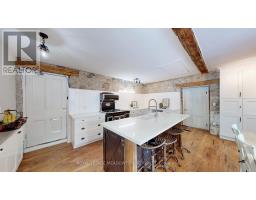 Step away from the ordinary in this welcoming 3,442+ sf, 4 bdrm, 4 bath century home ideal for families seeking space, privacy and a connection to nature. This treasured home blends timeless character on a private 10-acre setting for the ideal hobby farm. You will be transported back in time with a warm with soaring ceilings, open hearth wood-burning fireplaces, deep window sills, and original details. The unique and versatile floor plan can accommodate extended family needs. The recently renovated kitchen showcases a striking stone wall with timber beam accents, stone countertops, hardwood flooring, a vintage-style Elmira Stove, and a centre island with breakfast bar. Separate family, living, and dining rooms provide ample space for both everyday living and special occasions. The formal dining room currently serves as a main-floor primary bedroom, complete with a walk-in closet/office. The 2nd dining and currently used as a gym features oversized windows, a striking stone wall, and ample space for a harvest table, with a walkout to the garden. More conveniences include an enclosed sunroom, a mudroom with access to the 2 car garage, main-floor laundry, and a stately wood staircase to the bedrooms. Enjoy a pool area, views of a tranquil pond, a vegetable garden, storage & barn and gently rolling open fields that are perfect for exploring and pasture. An energy-efficient heat pump for heat and air conditioning (2019), R50 attic insulation, and updated asphalt shingles. Versatile outbuildings and an attached two-car garage offer ample space for cars, hobbies, toys, motorbike, outdoor gear and more. A generous driveway and laneway provide plenty of parking for cars, trucks and campers. All this is located just minutes from town amenities, schools, churches, Blue Springs Golf Club, and the GO Train station offering the perfect blend of country living and Town convenience. (id:51194)