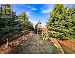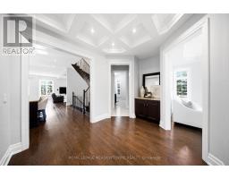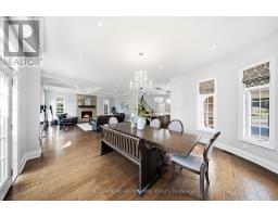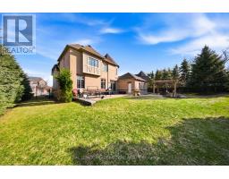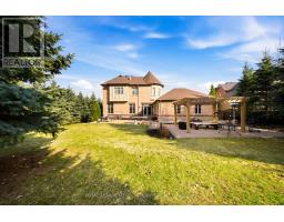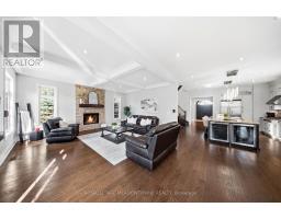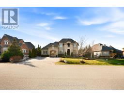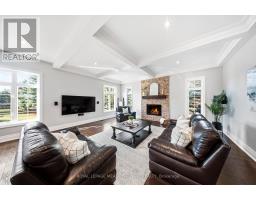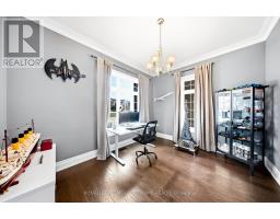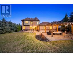 Stunning executive home set on 0.42 acres in a private cul-de-sac within the prestigious Meadows in the Glen community. An interlock driveway leads to a charming courtyard entry and triple car garage, offering exceptional curb appeal. Step into the grand foyer with soaring ceilings, opening to a private main floor office and an elegant separate living room with coffered ceiling overlooking the beautifully landscaped front yard. The open-concept main living space showcases luxurious finishes throughout, including gleaming hardwood floors, pot lights, and expansive sun-filled windows. The chef's kitchen features high-end built-in stainless steel appliances, a large centre island, custom backsplash, and flows seamlessly into the dining area with walkout to the backyard patio and a warm, inviting family room with fireplace. The spacious primary suite offers a large walk-in closet, charming circular window seat, 2-sided fireplace shared with the spa-like ensuite complete with double sinks, separate water closet, and glass-enclosed shower. Three additional bedrooms, each with ensuite access, complete the upper level. The finished basement extends the living space with a generous recreation room featuring a built-in bar and fireplace, two additional bedrooms, a home gym, and a 3-piece bathroom. Enjoy a private backyard oasis surrounded by mature trees, complete with a gazebo, firepit, and playset-perfect for family living and entertaining. Ideally located with a walking trail at the end of the cul-de-sac connecting directly to the Bruce Trail, leading into the charming village of Glen Williams and along the Credit River. (id:51194)
