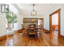 Welcome to 6 Queen Street! This beautiful, Victorian-inspired stone home is filled with charm & comfort, perfectly situated in the heart of Georgetown & just minutes from the Georgetown GO. The bright front sunroom, wrapped in windows, leads into a warm & inviting foyer featuring hardwood flooring, high baseboards, deep-set windows, and 10-foot ceilings that span the main level. The living room boasts hardwood floors, a bay window overlooking the front yard, and one additional large window flooding the room with natural light. The dining room offers a cozy wood-burning fireplace, creating the perfect ambiance for gathering. A main floor office with wood-panel wainscoting provides an ideal work-from-home space & can easily double as a main floor bedroom. A spacious addition expands the living area, showcasing an updated open-concept kitchen with granite counters, shaker cabinets, a double sink, built-in microwave, wine & beverage fridge & a window overlooking the side yard. The bright and airy breakfast area opens into the large family room, where a picture window frames views of the backyard & includes a convenient walkout to the side yard. A charming main floor powder room is an added bonus! Upstairs are two bright bedrooms with the primary featuring hardwood floors & a walk-in closet. The second bedroom also includes hardwood flooring and a beautiful bay window overlooking the front yard. The updated five-piece family bath offers a free-standing soaker tub, glass-enclosed walk-in shower, double sink & built-in vanity. The lower level provides excellent additional space for family or guests, complete with a rec room, bonus room/den & secondary kitchen. This basement also includes a brand-new three-piece bathroom with glass shower, laundry area with cabinetry & a folding counter. Outside, the large, fenced yard features an interlock patio, a shed, & plenty of room to play. Enjoy being a short walk to parks, schools, shops, & Georgetown's charming downtown. (id:51194)