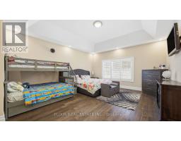 Welcome to a statement of refined luxury in the prestigious Riverwood community of Halton Hills. Set on a rare, premium corner lot, this exceptional 2018-built detached residence offers 4+1 bedrooms and 5 bathrooms, thoughtfully designed for elevated living with uncompromising attention to detail. The home's stone and brick façade, paired with professionally installed interlocking in the front and backyard, delivers timeless curb appeal with effortless maintenance. Step inside to an atmosphere of sophistication highlighted by 10-ft custom coffered ceilings, rich premium hardwood flooring, designer wainscoting, and pot lights throughout. The expansive, sun-filled layout features separate living and family rooms with a defined dining space, creating the perfect balance between elegant entertaining and everyday comfort. The heart of the home is a chef-inspired gourmet kitchen, showcasing high-end JennAir stainless steel appliances, custom Cameo cabinetry, Caesarstone countertops, and a striking oversized island-designed for both culinary excellence and upscale hosting. A custom-stained staircase seamlessly matches the hand-scraped engineered hardwood flooring, leading to the upper level where luxury continues. Upstairs, discover four generously sized bedrooms, including a primary suite retreat with soaring ceilings, his-and-her closets, and a spa-like 5-piece ensuite. Each additional bedroom features a private or semi-private bathroom, offering hotel-style comfort and privacy for family and guests. The fully finished basement extends the home's luxurious living space with an additional bedroom, a large recreation area, and an open-concept exercise zone-ideal for guests or a home wellness retreat. Located near parks, trails, top-rated schools, and community centers. This is a rare luxury lifestyle opportunity in Georgetown's most sought-after neighborhood. Once you experience it, there's no comparison (id:51194)