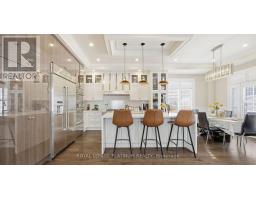 Welcome to a statement of refined luxury in the prestigious Riverwood community of Halton Hills. Set on a rare, premium corner lot, this exceptional 2018-built detached residence offers 4+1 bedrooms and 5 bathrooms, thoughtfully designed for elevated living with uncompromising attention to detail. The home's stone and brick facade, paired with professionally installed interlocking in the front and backyard, delivers timeless curb appeal with effortless maintenance. Step inside to an atmosphere of sophistication highlighted by 10-ft custom coffered ceilings, rich premium hardwood flooring, designer wainscoting, and pot lights throughout. The expansive, sun-filled layout features separate living and family rooms with a defined dining space, creating the perfect balance between elegant entertaining and everyday comfort. The heart of the home is a chef-inspired gourmet kitchen, showcasing high-end Jenn Air stainless steel appliances, custom Cameo cabinetry, Caesarstone countertops, and a striking oversized island-designed for both culinary excellence and upscale hosting. A custom-stained staircase seamlessly matches the hand-scraped engineered hardwood flooring, leading to the upper level where luxury continues. Upstairs, discover four generously sized bedrooms, including a primary suite retreat with soaring ceilings, his-and-her closets, and a spa-like 5-piece ensuite. Each additional bedroom features a private or semi-private bathroom, offering hotel-style comfort and privacy for family and guests. The fully finished basement extends the home's luxurious living space with an additional bedroom, a large recreation area, and an open-concept exercise zone-ideal for guests or a home wellness retreat. Located near parks, trails, top-rated schools, and community centers. This is a rare luxury lifestyle opportunity in Georgetown's most sought-after neighborhood. Once you experience it, there's no comparison (id:51194)