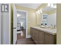 Welcome to this exceptional custom residence by Double Oak, offering over 4,000 sq. ft. of beautifully finished living space designed for families who value craftsmanship, elegance, and thoughtful design. Striking curb appeal showcases a refined blend of brick, stone, and stucco, complemented by custom curbs and walkways. Situated on a rare 145' deep lot, the home offers a private backyard retreat with a large bi-level deck and custom awning - ideal for both entertaining and quiet relaxation. A mahogany custom front door opens to a grand foyer and bright open-concept main floor with 9' ceilings, hardwood flooring, California shutters, and clean architectural lines free of bulkheads. The chef-inspired kitchen features professional-grade Thermador appliances, Caesarstone countertops, extensive custom cabinetry, and an impressive 8' island with prep sink and breakfast bar. The kitchen flows seamlessly into the spacious dining and living areas, highlighted by a gas fireplace with custom mantle and two garden door walkouts to the backyard. Upstairs offers four generously sized bedrooms and three well-appointed bathrooms. The primary suite overlooks the backyard and includes a walk-in closet and a luxurious five-piece ensuite with an 8.5' double vanity, Caesarstone counters, oversized glass shower, and additional storage. A Jack-and-Jill five-piece bath and separate four-piece bath provide comfort and privacy for family and guests. The finished basement expands the living space with a large recreation room, two-piece powder room, substantial storage, and a versatile 25' room ideal as a fifth bedroom, office, or gym. Main floor laundry with custom cabinetry and direct access to the double car garage completes this refined and thoughtfully designed family home. (id:51194)