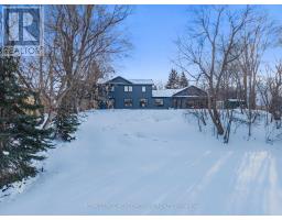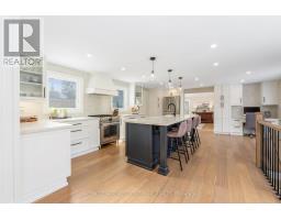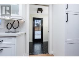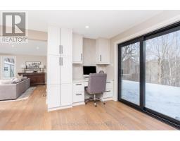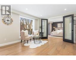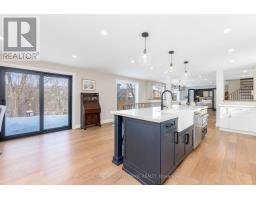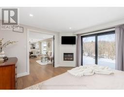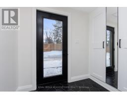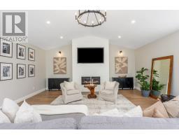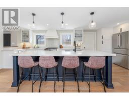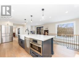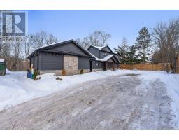 Situated on a premium lot offering over half an acre of beautifully treed property, this exceptional 4-bedroom, 2-bathroom home blends modern updates with warm, inviting living spaces and ample parking for family and guests. The 2022 addition has transformed the home, creating a thoughtfully designed and beautifully renovated layout. The main floor primary suite is a true retreat, featuring modern glass French doors, pot lights, rich walnut hardwood flooring, and a stylish 3-piece ensuite.The open-concept living and great room impress with vaulted ceilings, abundant natural light, pot lights, and hardwood flooring, all centred around a cozy gas fireplace. Designed for effortless entertaining, the seamless flow between the living, dining, and kitchen spaces makes hosting a breeze. The chef-inspired kitchen showcases quartz countertops, a stunning herringbone tile backsplash, Bosch stainless steel appliances, extensive quality cabinetry, and a massive sit-up centre island. A built-in desk area adds functionality, while the walk-out provides easy access to the backyard. Upstairs, you'll find three bedrooms, laundry and a well appointed 4-piece bathroom. Step outside to your own private escape. Surrounded by mature trees and expansive green space, the backyard offers exceptional views of the lush landscape beyond the property line, creating a peaceful, country-like setting perfect for relaxing or gathering with family and friends. Move-in ready and meticulously updated, this home is conveniently located close to shopping, restaurants, parks, trails, the GO Station, and all major amenities.Updates Include: Addition (2022), Roof Shingles (2022), Kitchen Appliances (2022), Septic Tank (2022), HVAC (2016). Conveniently on Municipal Water. (id:51194)