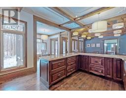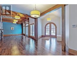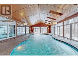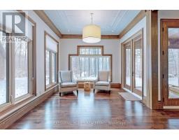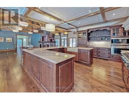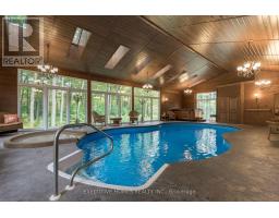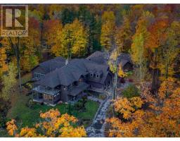 Welcome to 7651 Milburough Line, an exceptional private estate set on 42 acres of picturesque countryside in Milton, complete with a spring-fed pond and 30 acres of mature sugar maple forest. A long, tree-lined private drive leads to this remarkable custom-built residence offering approximately 19,470 sq ft of total living space (15,696 sq ft finished). Designed for grand living and entertaining, the home features 11 bedrooms and 11 bathrooms, ideal for multi-generational families or luxury retreats. Inside, timeless elegance is expressed through soaring 22-ft vaulted ceilings, coffered details, handcrafted plaster mouldings, and rich solid wood finishes throughout. Two gourmet kitchens, outfitted with professional-grade appliances, provide exceptional versatility for hosting on any scale. The main floor primary suite is a true sanctuary, highlighted by a spa-inspired ensuite with chromatherapy tub, heated backrests, warming drawer, and heated towel rack. Multiple principal rooms are anchored by five gas fireplaces and a striking wood-burning fireplace, offering warmth and sophistication. Resort-style amenities elevate the experience, including a stunning indoor heated pool with hot tub and children's wading area, along with a dedicated wellness wing featuring a home gym and spa with dual saunas. The finished lower level with walkouts adds flexible space for recreation or extended family living.Outdoors, enjoy multiple patios, screened porches, and a Muskoka-style room with a double-sided fireplace, all surrounded by serene natural beauty. Built with exceptional quality, the home includes geothermal heating, in-floor radiant systems, 400-amp service, metal roofing, and advanced water purification. Renovated in 2015, this rare offering blends luxury, privacy, and convenience just minutes from major routes. (id:51194)