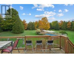 Welcome to this exceptional 12-acre private retreat in Erin, offering over 3,600 sq ft of total living space across three self-contained units, ideal for multi-generational living. The main level features 3 bedrooms, including a primary with 2-piece ensuite, a bright combined living and dining area with hardwood floors and walk-out to a raised deck, plus a large eat-in kitchen with deck access. Connected yet privately positioned, the upper-level in-law suite can function as a fully self-contained unit with its own separate entrance. This space includes a living room, dining area with walk-out to a deck, kitchen, one bedroom with a walk-in closet, and a spacious 5-piece bathroom. The finished lower level includes an additional self-contained unit with bedroom, office or potential second bedroom, living room with wood-burning fireplace, kitchen with walk-out to patio, and 4-piece bath. Outdoors, the property transforms into a private sanctuary. The beautifully landscaped backyard features an inground pool with surrounding deck space, ideal for summer entertaining. Private walking trails wind through the acreage and wetlands, offering outstanding bird and wildlife viewing. The oversized two-car garage provides additional versatility for hobbyists, entrepreneurs, or remote work. The extended driveway accommodates parking for up to 10 vehicles. Located 5 minutes to Acton and the GO Train, and 20 minutes to Highway 401. A rare opportunity to enjoy country living with commuter convenience. Built in 1976 and thoughtfully updated over the years, this property is located on a school bus route and may be eligible for a property tax rebate due to conservation features. Offering privacy, space, and remarkable flexibility in a sought-after Wellington County location, this is a rare opportunity to own a true country estate within commuting distance of the GTA. (id:51194)
