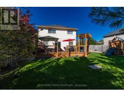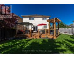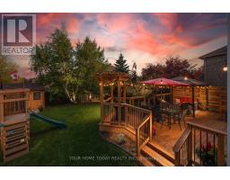 An inviting covered porch welcomes you into this lovely family home that has been updated with attention to detail and a designer flair. The main level features stylish flooring, pot lights and tasteful finishes throughout. The kitchen enjoys neutral white cabinetry, subway tile backsplash, breakfast bar, pantry and walkout to a party-sized deck overlooking the nicely landscaped and very private yard. A large dining room with corner gas fireplace is ideal for entertaining a crowd while the sun-filled living room (open to the breakfast area) is perfect for family time. A nicely updated powder room and garage access complete the level. The upper level offers the same flair and attention to detail found on the main level with three spacious bedrooms and two full bathrooms. The primary bedroom enjoys a luxurious 3-piece ensuite and a superb walk-in closet with built-in shelving and two separate pocket doors. Two remaining bedrooms share the nicely updated 4-piece bathroom. An office nook/den overlooking the staircase completes the level. The lower level, also decorated with a designer flair, adds to the living space with a rec room featuring an eye-catching built-in fireplace, an enviable laundry room and plenty of storage/utility space. For your outdoor fun - the backyard offers a huge deck with privacy panel, pergola and gazebo overlooking the large pie-shaped yard complete with mature trees and lovely gardens. A good-sized shed and play structure add to the enjoyment. Wrapping up the package is the well-equipped garage with attached shelving, loft storage and slatwall panels for added convenience. Located in a quiet family friendly neighbourhood just steps to community sports field, park and trail and close to Trafalgar Sports Park, schools, hospital, fairgrounds, downtown shops, library and more. Easy access to main roads for commuters is a bonus! (id:51194)